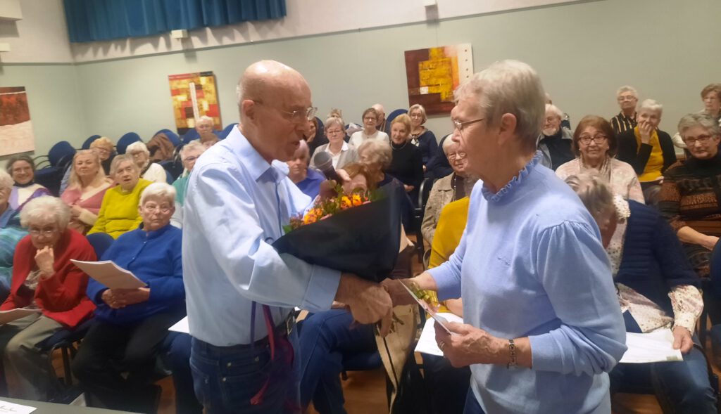 Namens de leden bedankt mw. Marie-José het bestuur voor alles wat zij doet voor de vereniging. Dhr. Cees Aarts zorgt voor een mooie afsluiting. Samen zingen we “Can’t help falling in love”.